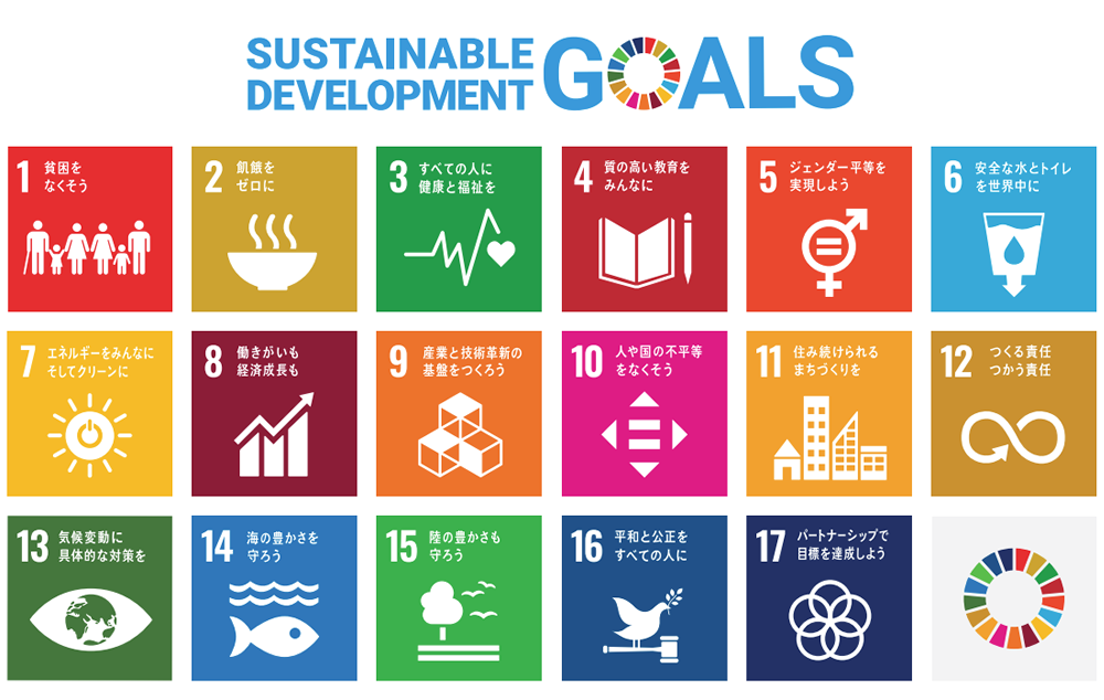 弊社ではSDGsへの取り組みや普及・支援を行っています。